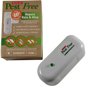 Plug-In Pest Free is the only electromagnetic rodent control that has been scientifically proven to work. All sales receive a 60 day, risk-free, money back guarantee*. Plug-In Pest Free products are environmentally friendly and safe for families and pets. Each unit lasts for years so it is an extremely cost effective way to get rid of rats and mice. Join thousands of other satisfied customers to keep rats, mice and cockroaches away from your home, business or farm. The units cover between 200 and 1000 square metres, so please choose the right size and number of Plug-In Pest Free pest repellers to suit your premises.